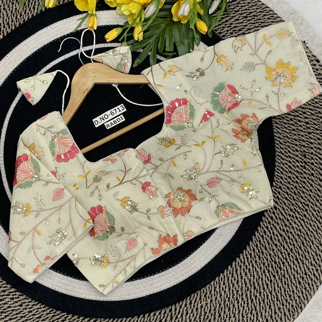 Readymade Khadi Cotton Classic Garden Vine & Petal Blouse - BL 6722